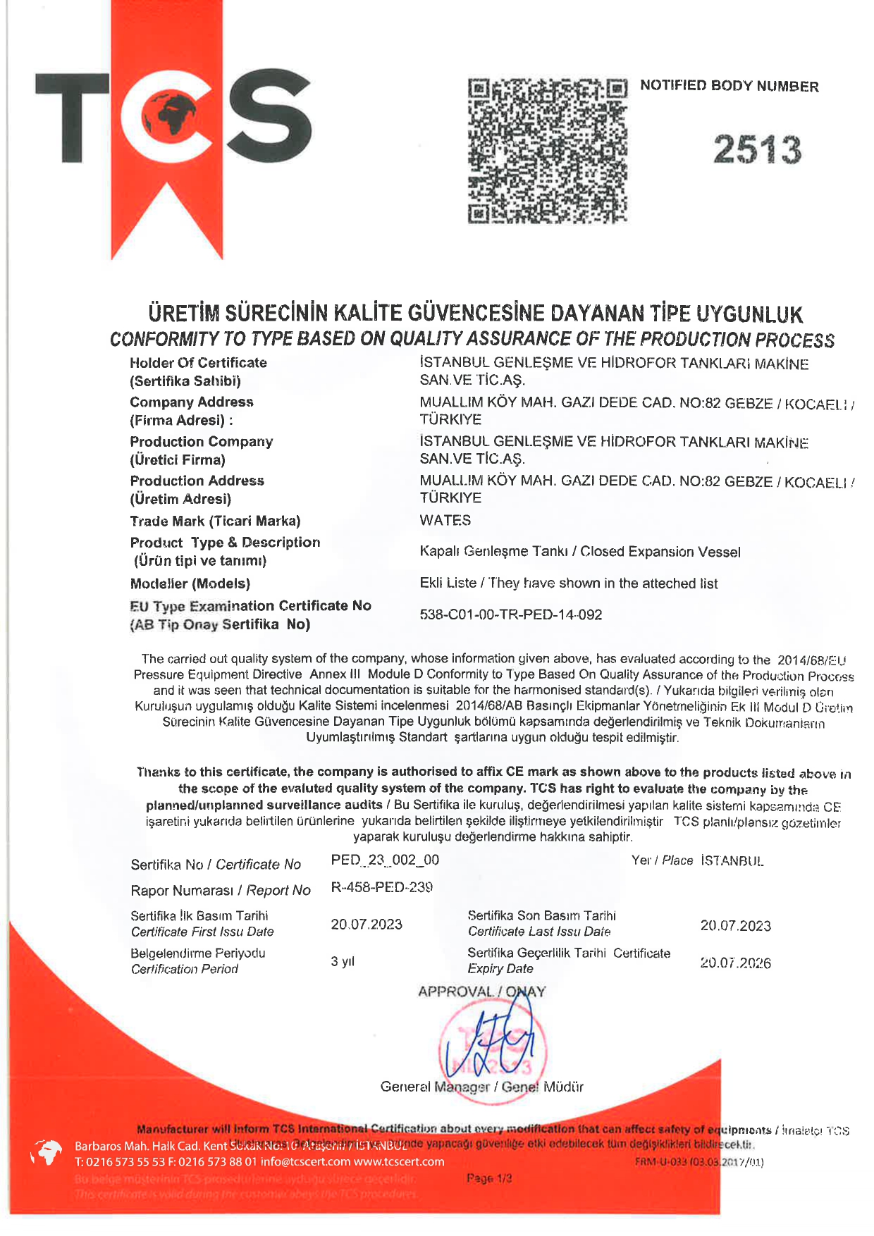 CE Сертификат (Установки повышения давления серии EPH, KO, KI, KO-ST )